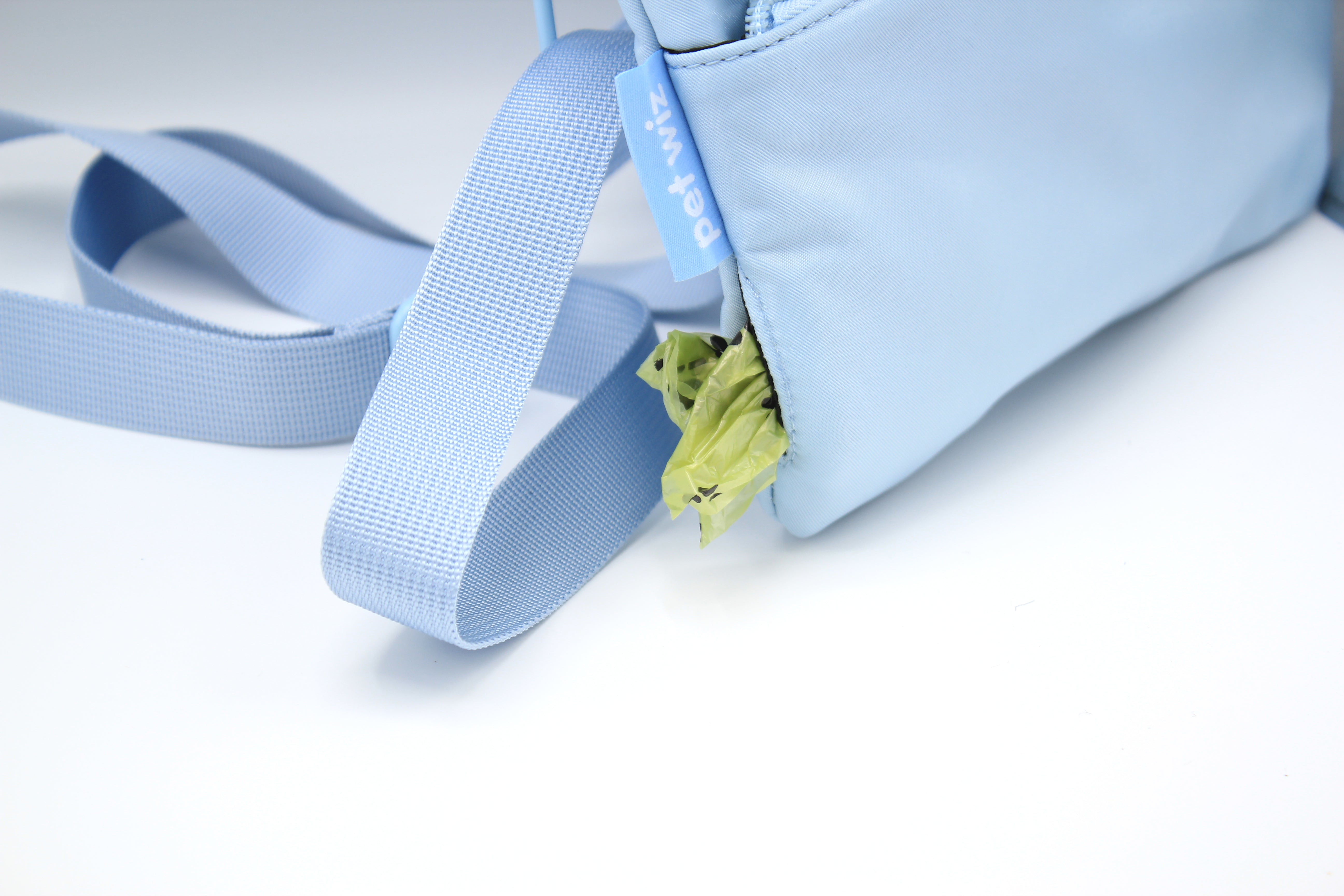 The bag features a front zip pocket, ideal for keeping your phone secure yet easily accessible. The main compartment also has a zip closure, perfect for storing dog treats, keys, and other personal items you might need for your doggy day out. Designed with colour-matching zips for a seamless look, the bag also discreetly includes a poop bag dispenser on the side, making clean-up quick and easy.